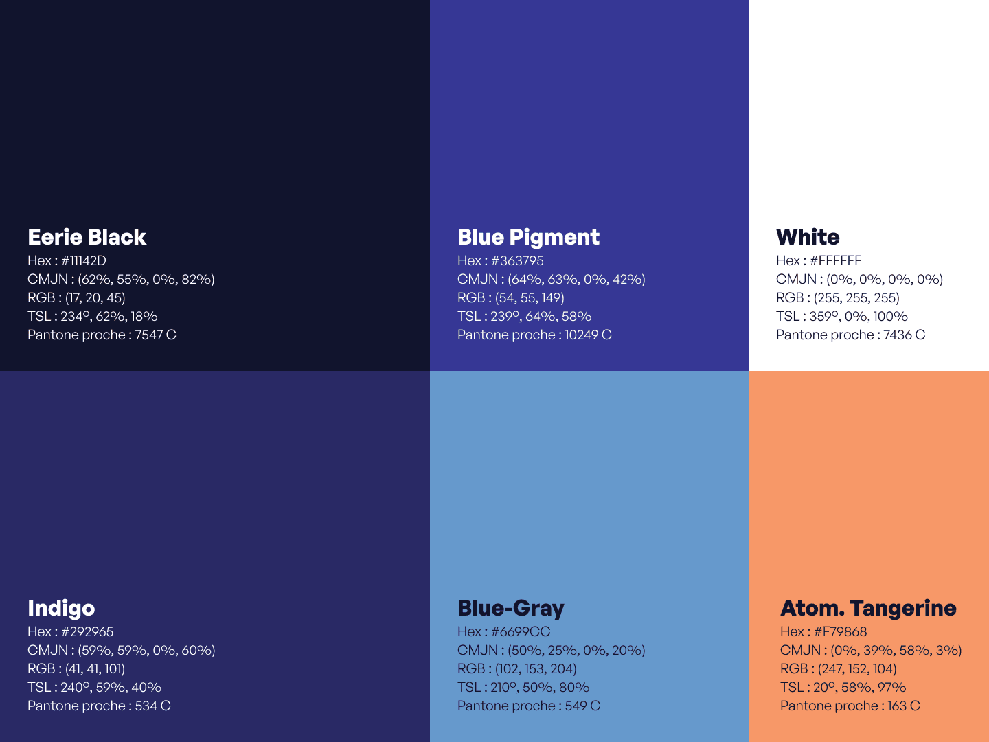 Logo, palette, typographies et éléments graphiques forment un univers cohérent, facilement déclinable sur supports print et web.
