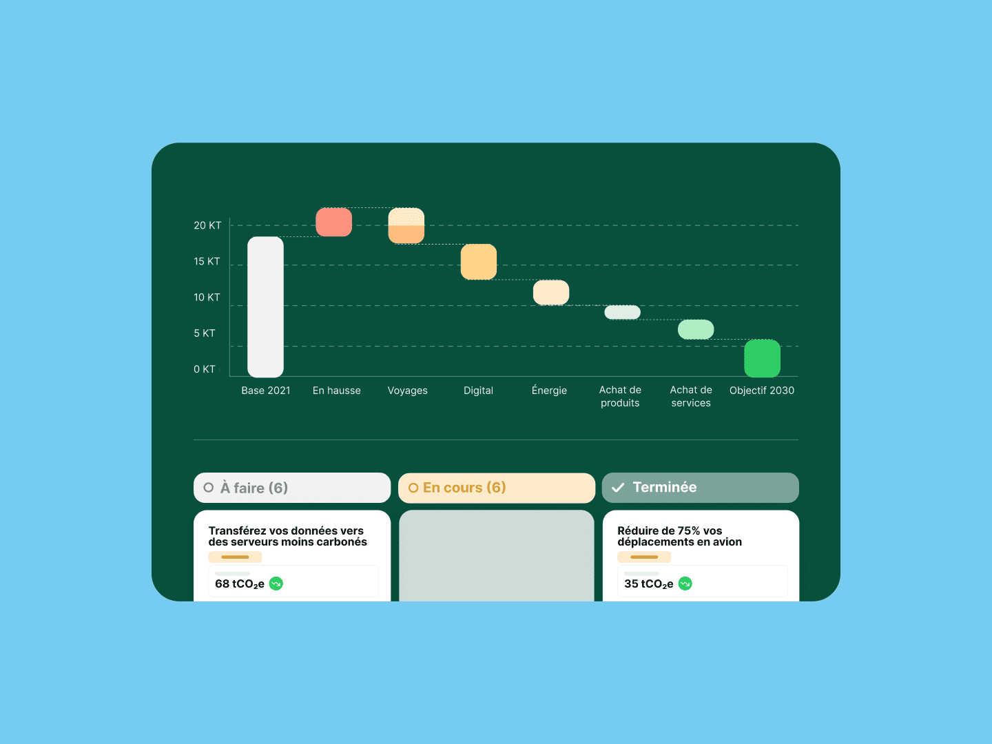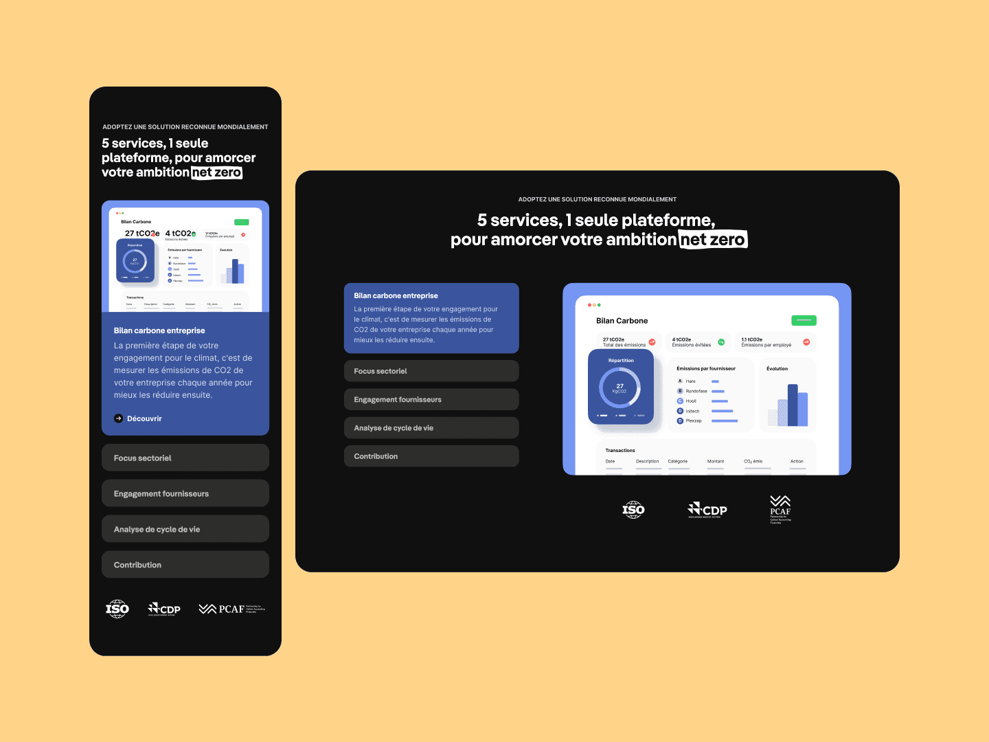 L’approche UI combine clarté, légèreté et hiérarchisation efficace des contenus pour accompagner les entreprises dans leur transition.