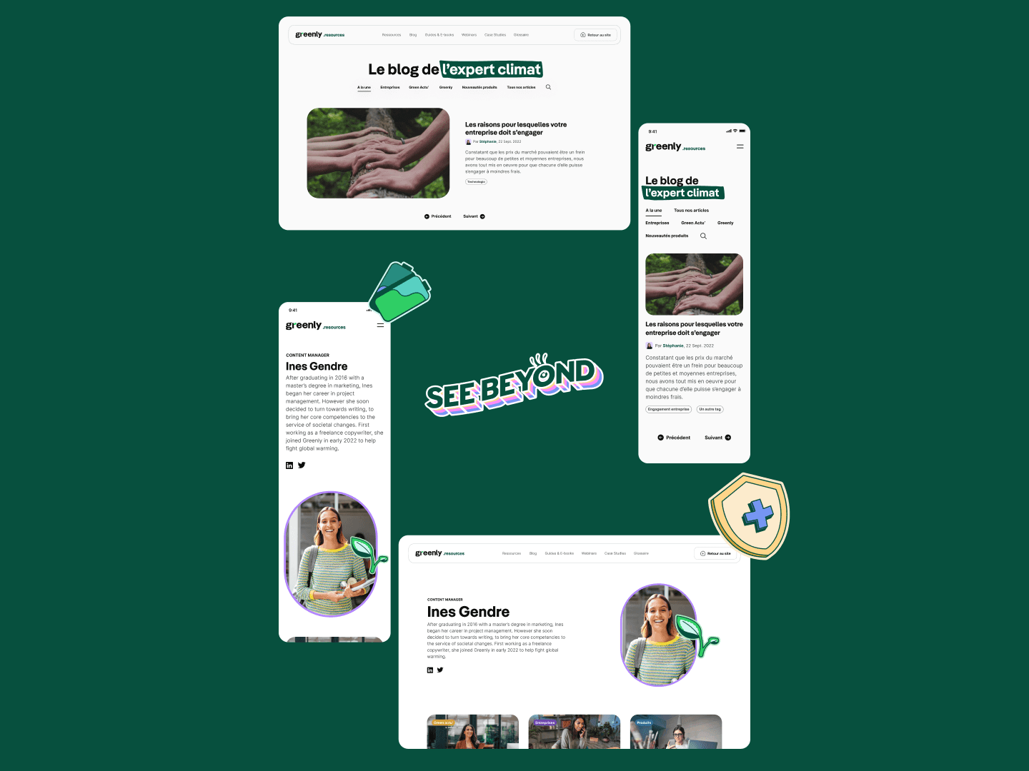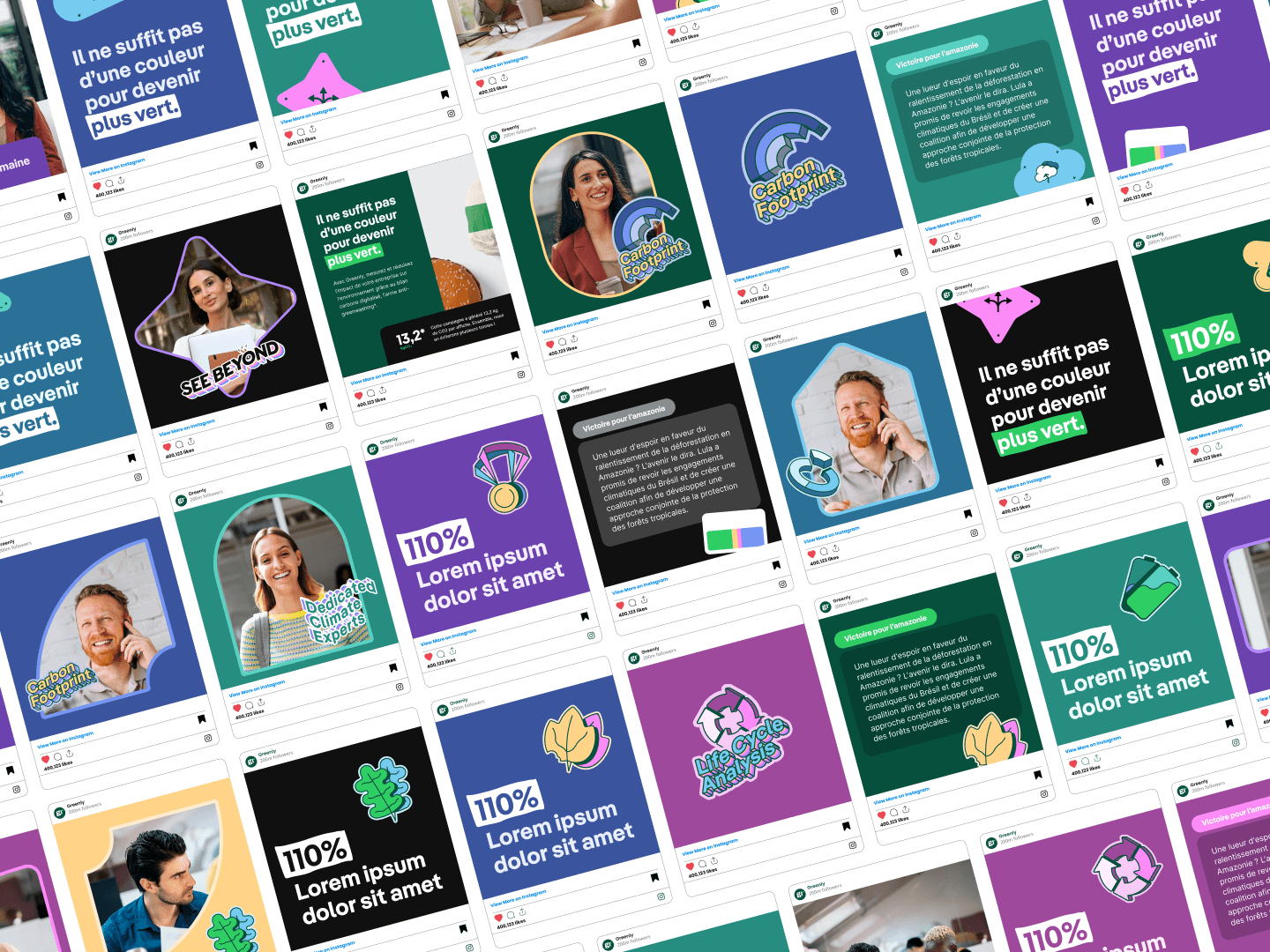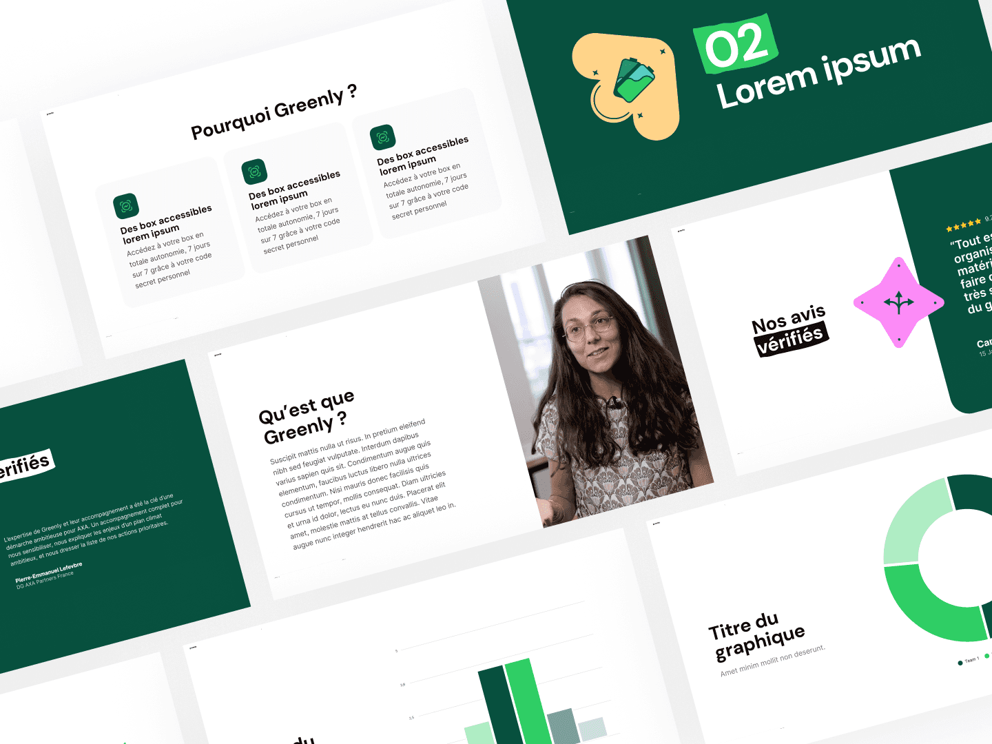 J’ai également décliné l’identité de Greenly à travers une série de visuels marketing : illustrations produit, slides de présentation, contenus pour les réseaux sociaux…