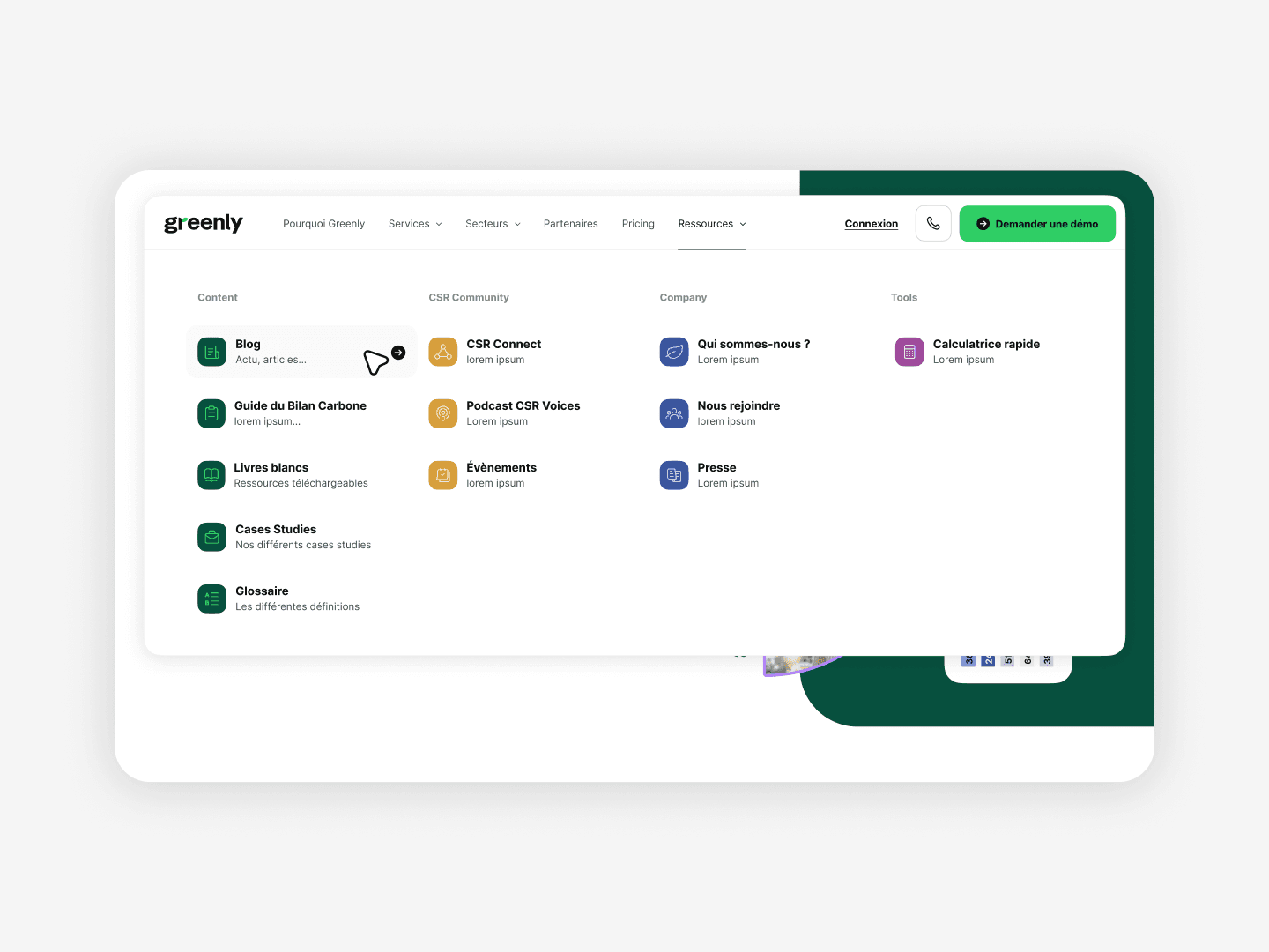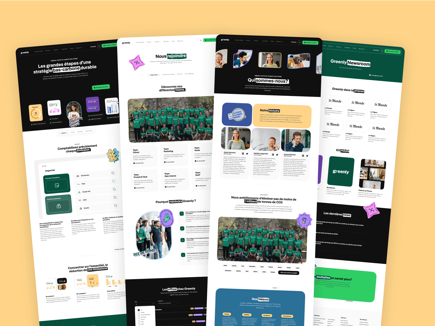 Dans le cadre de mon alternance au sein de l’agence Bruno, j’ai eu l’opportunité de travailler sur l’interface web de Greenly, une entreprise spécialisée dans le suivi et la réduction de l’empreinte carbone des entreprises. Ma mission : concevoir une interface claire et moderne, capable de rendre des données complexes accessibles, lisibles et engageantes. L’objectif était de faire converger impact environnemental et expérience utilisateur fluide, tout en respectant l’identité visuelle existante de la marque